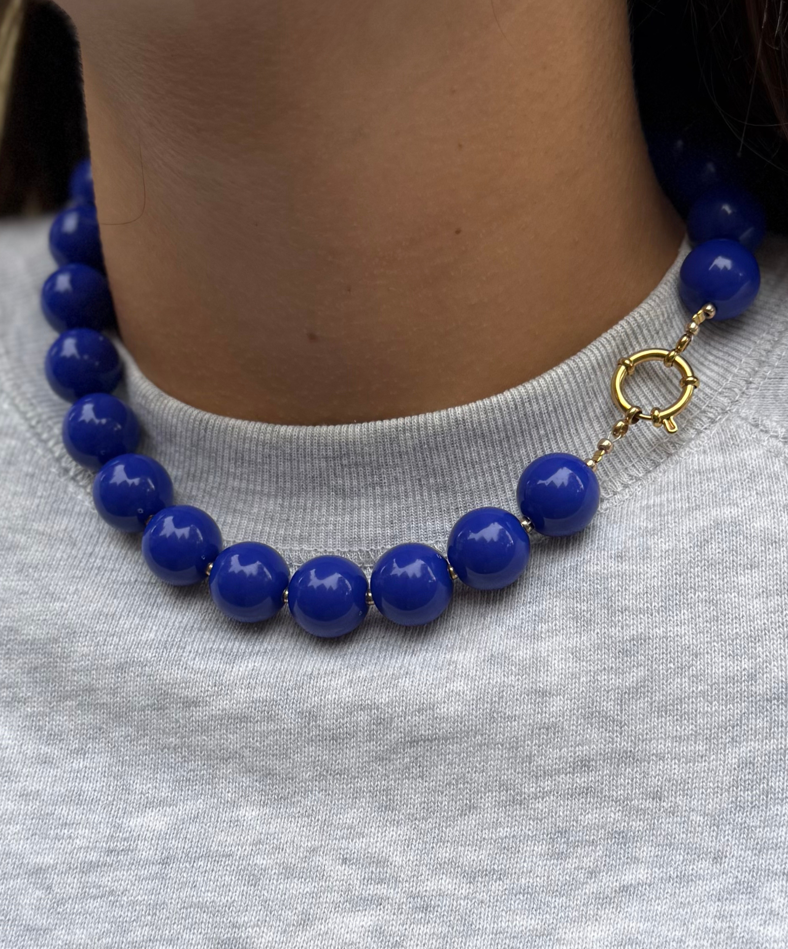 Chunky, speels en onweerstaanbaar stijlvol. De Navy Blue Necklace is dé finishing touch voor elke outfit, van je favoriete oversized sweater tot een chique avondlook. Met de hand gemaakt in Nederland, waardoor elke halsketting net zo uniek is als jij.